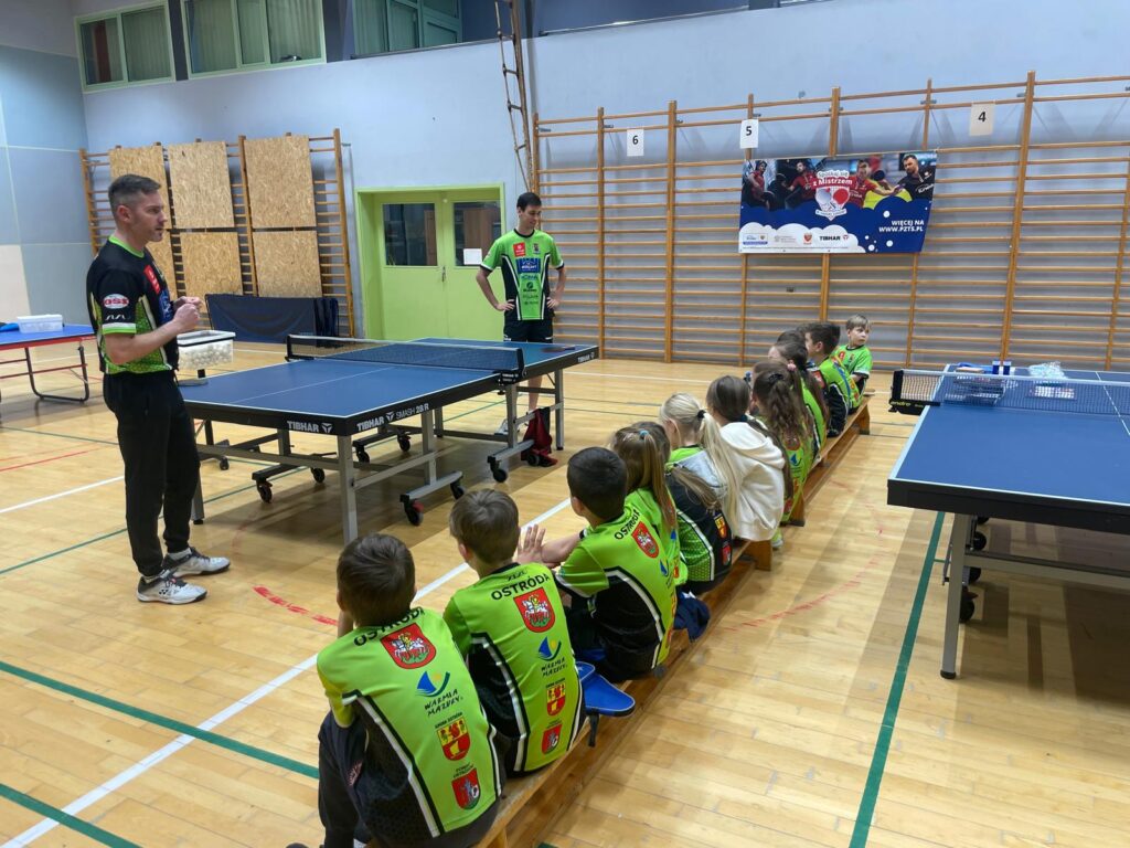 Łukasz opowiedział naszym młodym adeptom m.in. jakie były jego początki przy pingpongowym stole, jakie cechy powinien posiadać mistrz, a także o swoich największych osiągnięciach. Był też czas, żeby każdy odbił kilka piłek z naszym gościem.